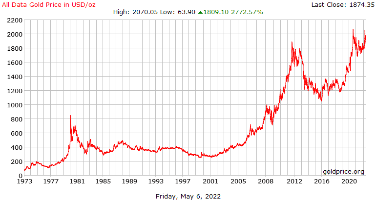 Evolución del precio del oro en dolares (Últimos 50 años)