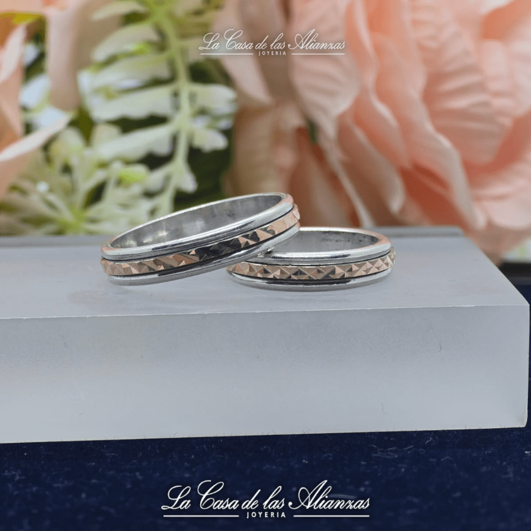 Cada amor tiene su propio brillo, y nuestras alianzas de Oro 18 Kt y plata 925 capturan esa luminosidad de manera única y destacada
